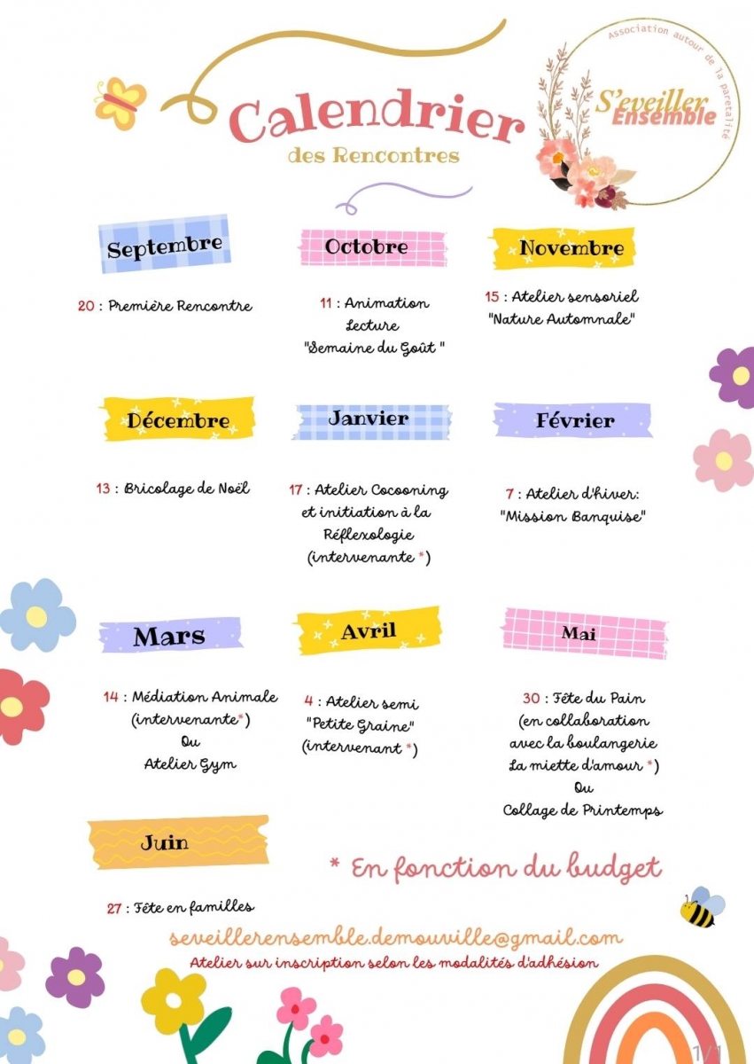 Les ateliers proposés ont lieu le samedi matin selon le calendrier suivant : cliquez ici